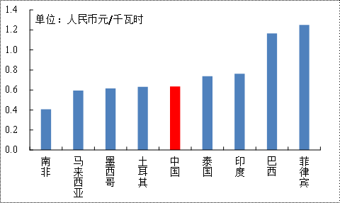 中國與有關(guān)國家電價(jià)比較情況(單位:元/千瓦時(shí))