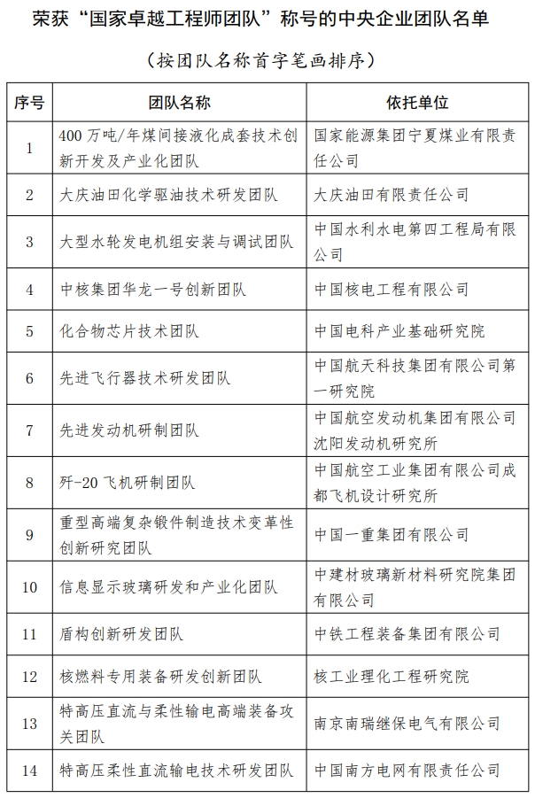 中央企業共有王軍等29名工程科技人才榮獲“國家卓越工程師”稱號,400萬噸/年煤間接液化成套技術創新開發及產業化團隊等20個團隊榮獲“國家卓越工程師團隊”稱號。