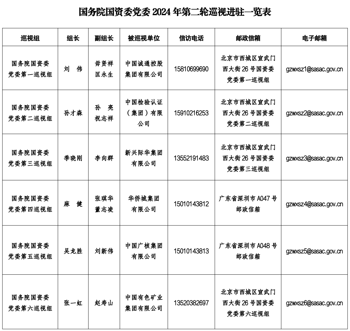 國(guó)務(wù)院國(guó)資委黨委巡視組進(jìn)駐6家中央企業(yè)開(kāi)展2024年第二輪巡視