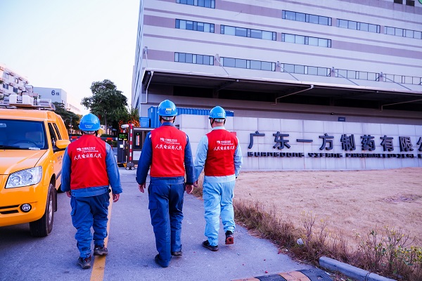 2月4日,南方電網(wǎng)廣東佛山南海供電局工作人員為相關(guān)藥品生產(chǎn)企業(yè)提供用電服務(wù)。