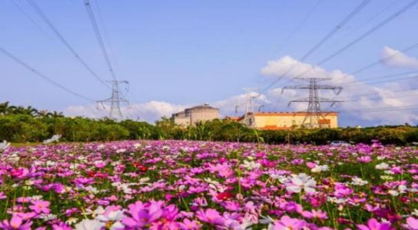 每年夏季,紅沿河核電基地內(nèi)的波斯菊、薰衣草盛開(kāi),形成一片面積超10萬(wàn)平方米的格桑花海。