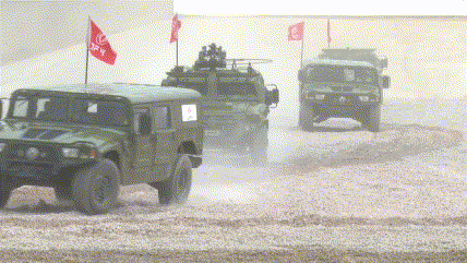 東風(fēng)猛士軍車兩輛高機動軍用越野車、一輛6人輕型防護突擊車、一輛10人輕型防護突擊車及輕型越野車掛車,為觀眾呈現(xiàn)5分30秒精彩演示。
