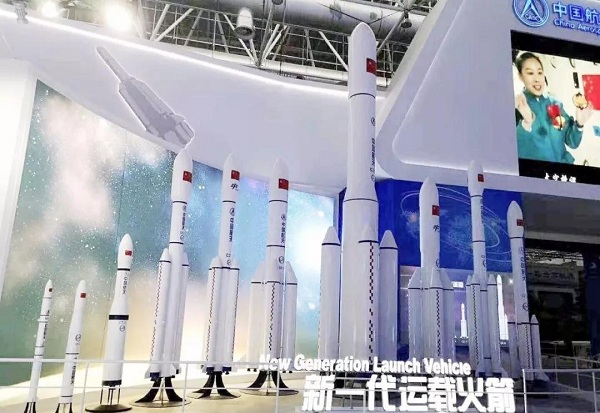 想上天,先要有火箭。在這次航展,新一代運載火箭家族首次集體亮相(以1:10的大比例模型展現(xiàn))。