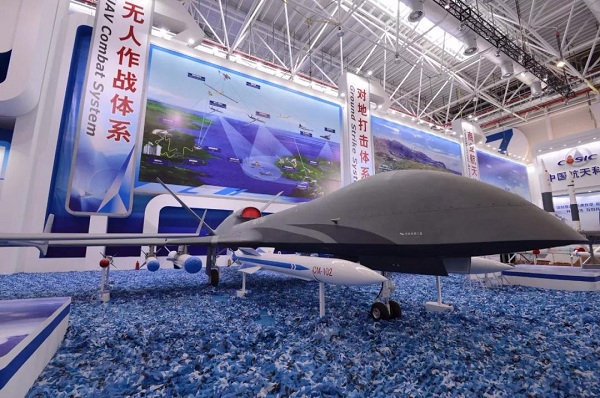 這次航展上首次亮相的彩虹7號無人機是室內(nèi)最大的展品之一,機機長10m,翼展22m,相當(dāng)于一架戰(zhàn)斗機,最大起飛重量達到13噸。它采用無尾飛翼構(gòu)型,像一只蝙蝠,氣動性能好,巡航速度高,還能隱身,受到軍民的高度關(guān)注。