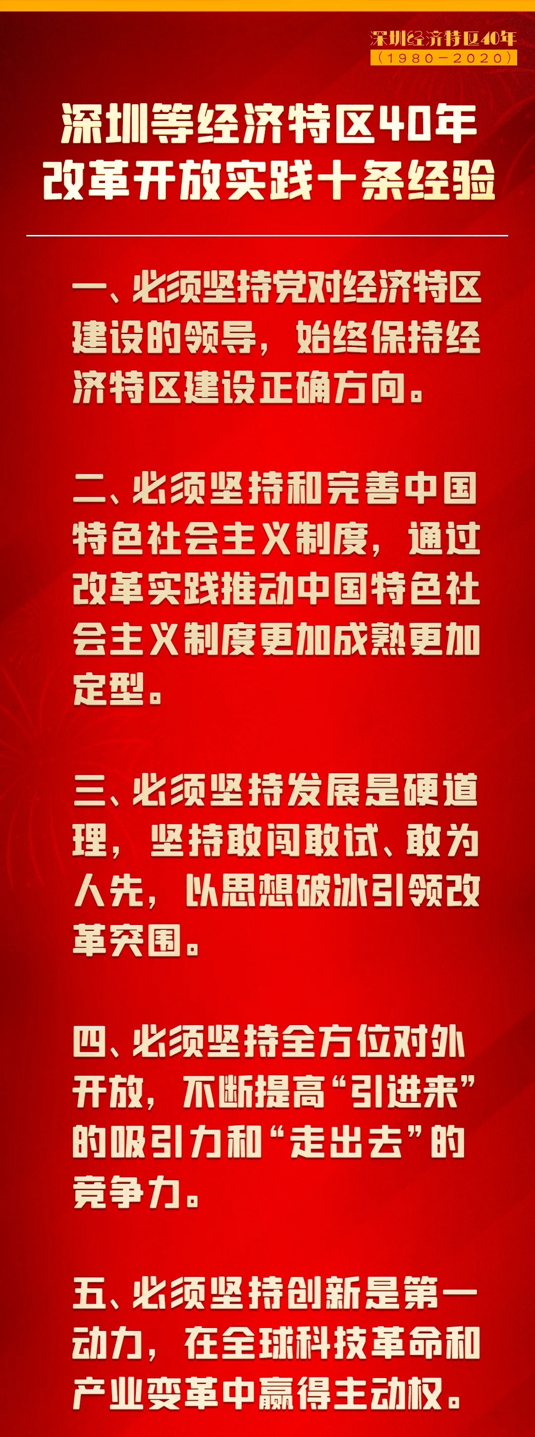 習(xí)近平強(qiáng)調(diào),以上十條,是經(jīng)濟(jì)特區(qū)40年改革開放、創(chuàng)新發(fā)展積累的寶貴經(jīng)驗(yàn),對(duì)新時(shí)代經(jīng)濟(jì)特區(qū)建設(shè)具有重要指導(dǎo)意義,必須倍加珍惜、長(zhǎng)期堅(jiān)持,在實(shí)踐中不斷豐富和發(fā)展。