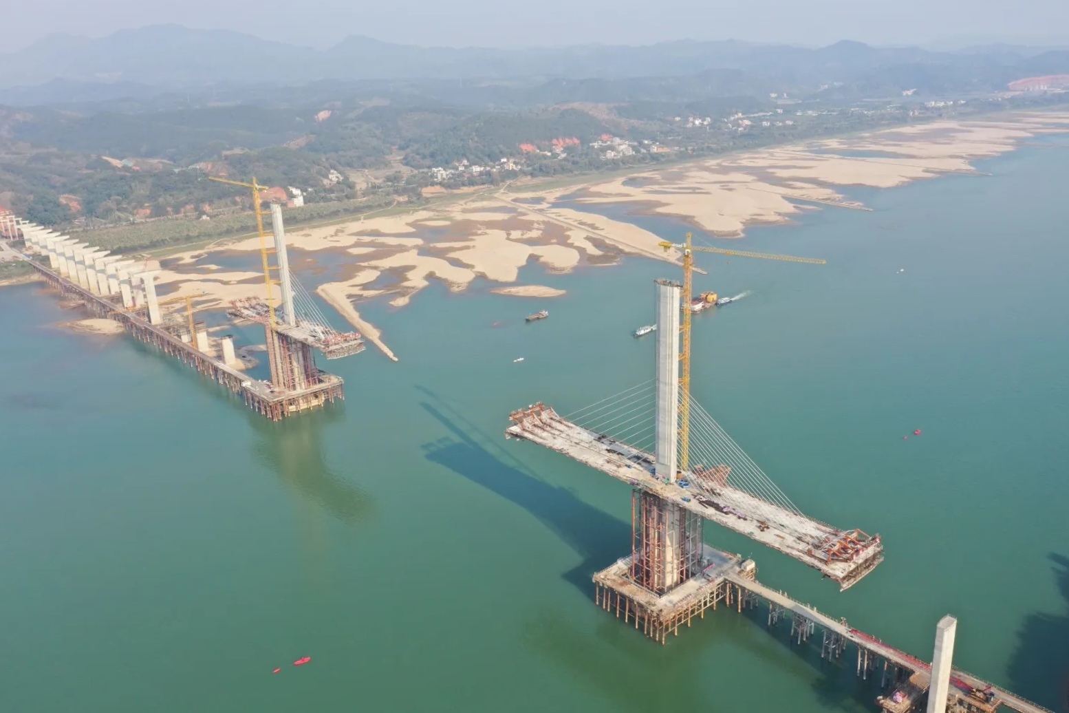 保利集團保利長大已復工的廣東省懷陽高速項目西江特大橋主墩正緊鑼密鼓進行掛籃施工。