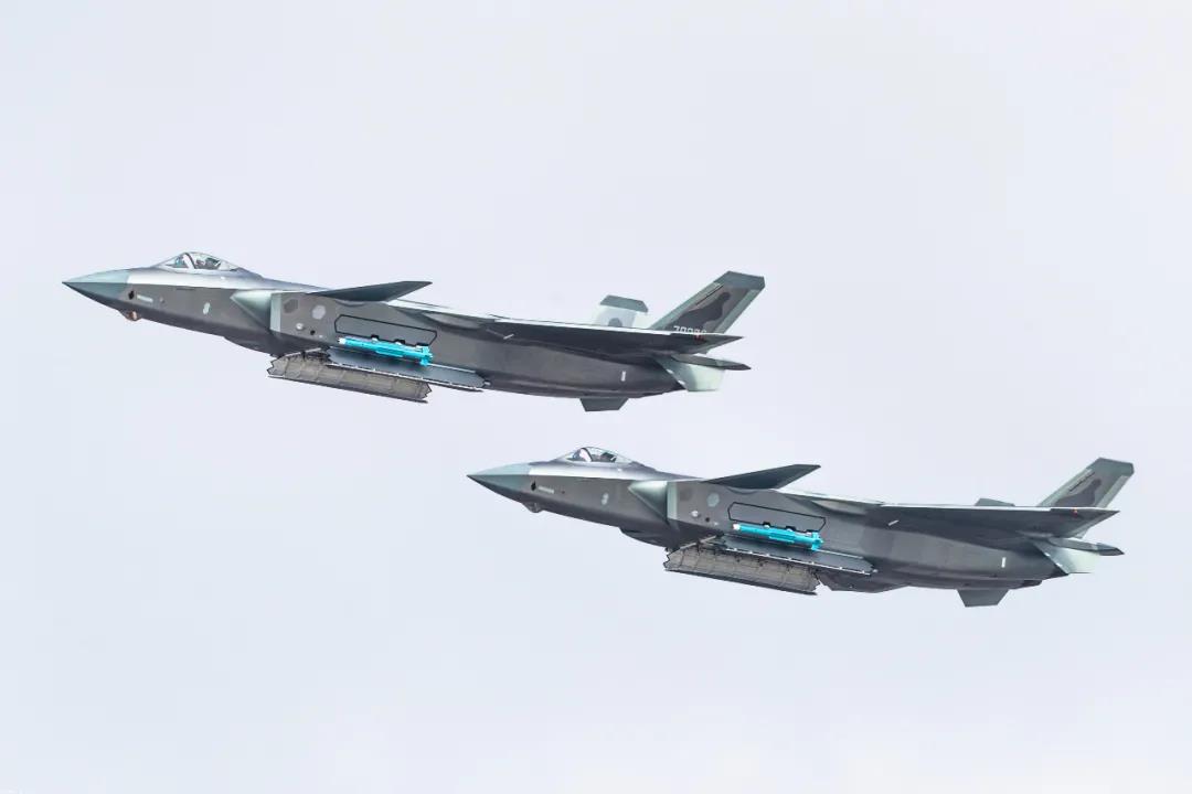 2019年10月17日,慶祝人民空軍成立70周年航空開放活動·長春航空展上,兩架殲20編隊而來,第一次通場時打開了側面彈艙,露出了白色的格斗導彈,隨后雙機編隊解散,一架返回,另一架留在本場繼續進行飛行表演。