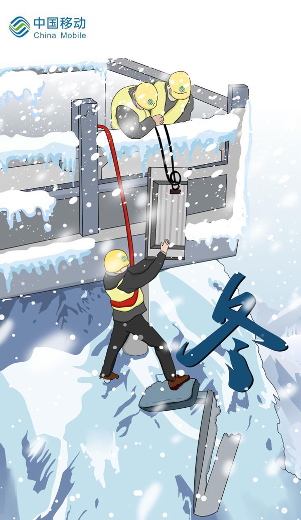 耐寒作業(yè),凌風(fēng)戰(zhàn)雪。移動人為了信號滿格,無懼懸崖峭壁。