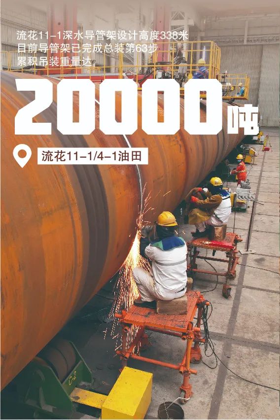 塔機高聳,導(dǎo)管蜿蜒,流花11-1/4-1油田二次開發(fā)項目深水導(dǎo)管架和圓筒型FPSO(浮式生產(chǎn)儲卸油裝置)在珠海和青島南北呼應(yīng),建造場地?zé)峄鸪臁F渲校瑢?dǎo)管架已完成總裝第63步,累計吊裝重量達(dá)20000噸,圓筒型FPSO完成船體“雙層底”合龍,船體建造進入全面加速期。