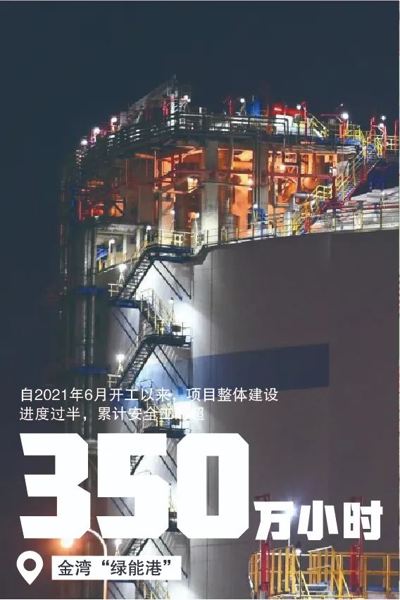 金灣“綠能港”二期項目被列入國家石油天然氣基礎(chǔ)設(shè)施重點工程,同時建設(shè)5座27萬立方米液化天然氣儲罐及配套設(shè)施,建成投產(chǎn)后,將成為華南地區(qū)規(guī)模最大的天然氣儲運基地,年處理能力可達(dá)700萬噸,折合氣態(tài)天然氣約100億立方米。該項目自2021年6月開工建設(shè),截至目前整體建設(shè)進度過半。項目經(jīng)受了暴雨、狂風(fēng)、臺風(fēng)、酷暑等極端天氣的考驗,累計安全工時超350萬小時。