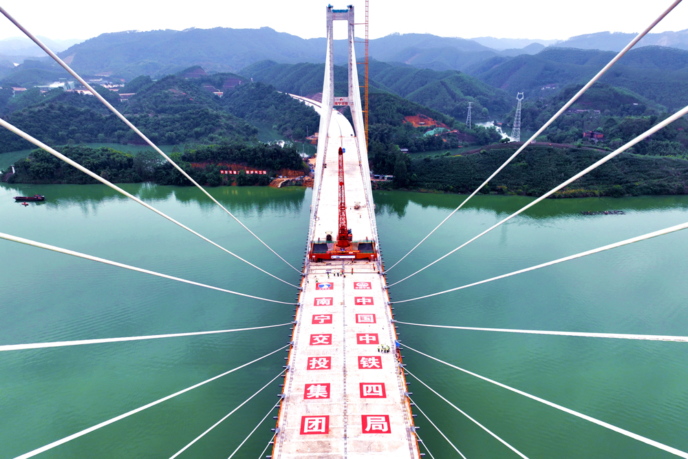 12月10日,由中國中鐵旗下中鐵交通投資建設、中鐵四局施工的廣西上(林)橫(縣)高速公路西津郁江特大橋主跨提前110天合龍。