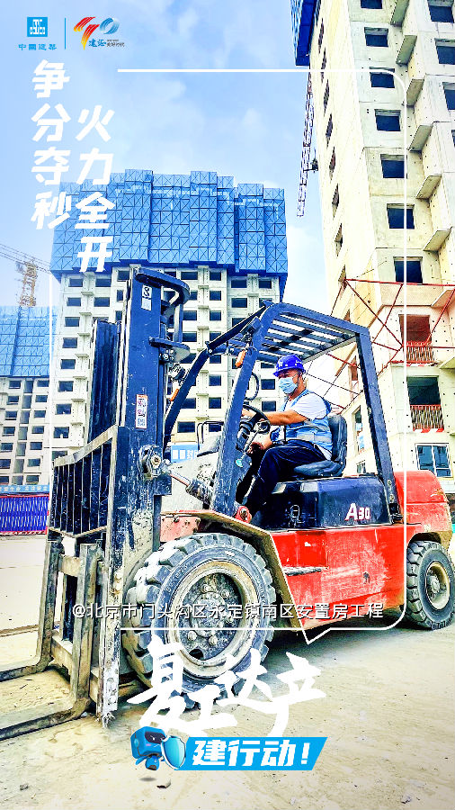 在北京市門頭溝區(qū)永定鎮(zhèn)南區(qū)安置房工程,中建六局建設者正在對物料進行運輸。