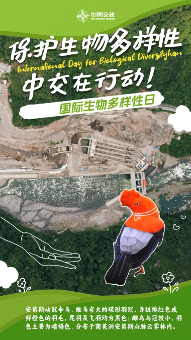中水對外承建的秘魯圣加旺水電站項目嚴(yán)格遵守當(dāng)?shù)丨h(huán)境和動植物保護規(guī)定,設(shè)置安全環(huán)境部,聘請經(jīng)驗豐富的環(huán)境工程師和動植物專家在項目開工前對施工區(qū)域的動植物進行探查、識別和保護。施工過程中,項目團隊將誤入施工區(qū)域的動冠傘鳥移交給當(dāng)?shù)亓謽I(yè)管理局,待檢查確認鳥體無恙后再放歸大自然。