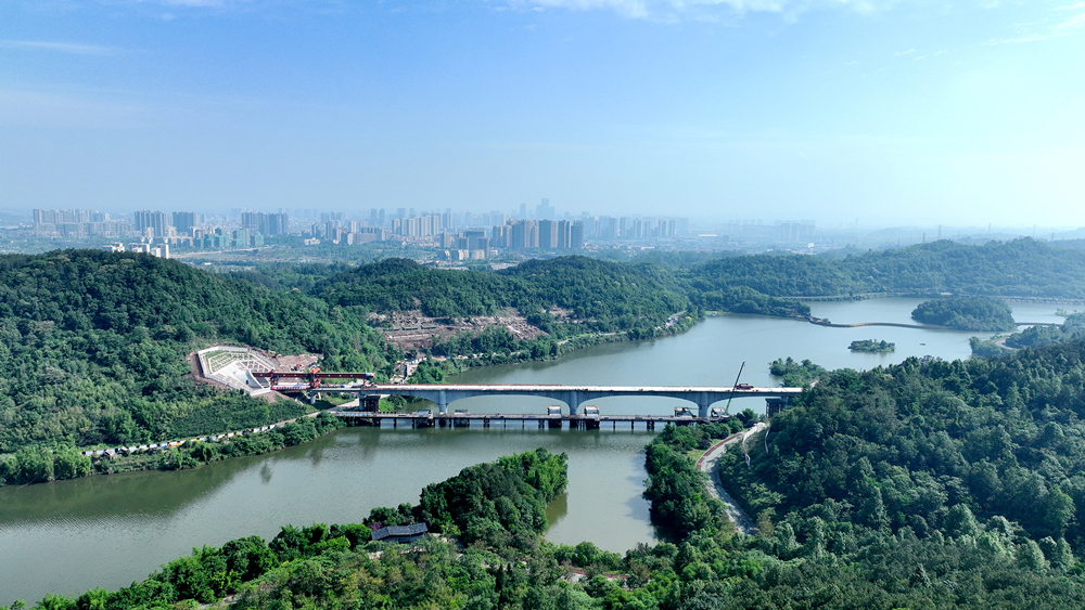 成渝中线高铁玄天湖双线大桥贯...