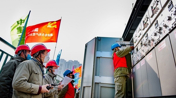 圖二 國(guó)網(wǎng)武漢供電公司員工在雷神山醫(yī)院進(jìn)行用電巡查