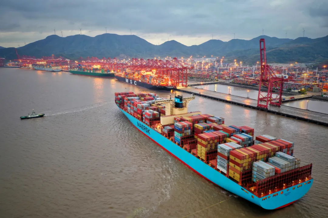寧波舟山港穿山港區集裝箱碼頭船只穿梭
