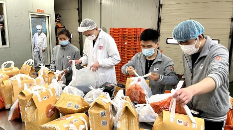 華潤五豐旗下上海五豐,以穩住上海市民的菜籃子,切實保障鮮肉產品供應為重點,3月份鮮肉供應量近千噸,確保了各菜場、超市及電商平臺等渠道的“五豐”鮮肉供應。同時,上海五豐對自營線下渠道和線上渠道進行價格管控、有針對性地建立保供產品目錄,積極推行社區團購,確保疫情期間消費者足不出戶便可訂購到放心平價鮮肉。據統計,3月份上海五豐社區團購線上支付3.9萬多件,為政府、超市、平臺定制市民保供鮮肉產品發貨超10萬份。