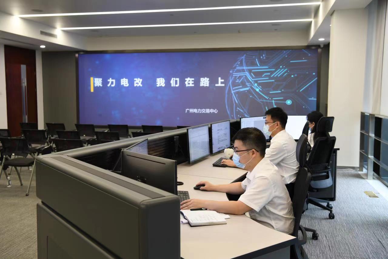 在廣州電力交易中心交易大廳,工作人員在進(jìn)行電力交易操作。