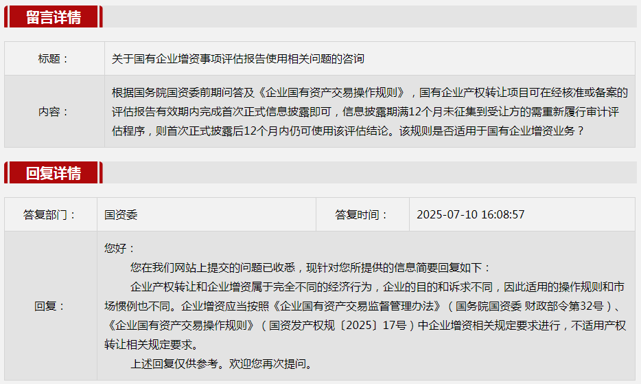 3.關于國有企業增資事項評估報告使用相關問題的咨詢