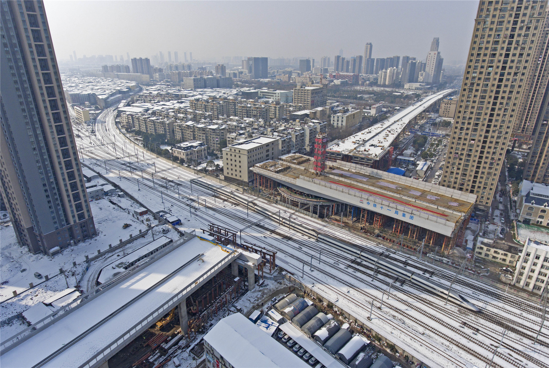 1月31日凌晨3時4分,由中國鐵建所屬中鐵十一局二公司承建的武漢市常青路主線轉體橋歷時103分鐘順時針轉動81度,跨越漢口火車站西咽喉岔區9股道,與引橋實現精準對接,順利合龍,刷新了轉體最不平衡、轉體橋面最寬、跨越特等站鐵路股道數最多三項轉體橋世界紀錄。