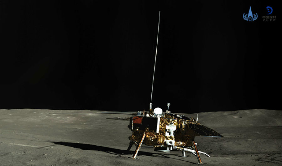 第二月晝期間,嫦娥四號著陸器和玉兔二號巡視器工作穩定,能量平衡,數據傳收正常。著陸器上配置的低頻射電頻譜儀、搭載的德國月表中子及輻射劑量探測儀,巡視器上配置的紅外成像光譜儀、搭載的瑞典中性原子探測儀等科學載荷重新開機,按計劃順利開展科學探測活動。巡視器全景相機對著陸器再次進行成像,獲得了著陸器彩色全景圖。