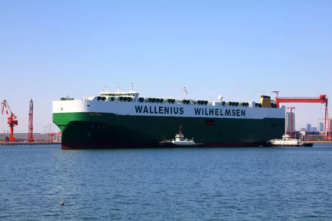 4月11日,中船重工新港船舶為瑞典華輪威爾森建造的高效、節能、環保型超巴拿馬型8000車位汽車滾裝船2號船順利交船。