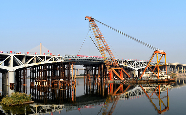 由中國鐵建所屬中鐵十五局負責施工的海河特大橋位于津南區與濱海新區交匯處,全長1640米,主橋采用3跨鋼混組合連續桁架結構橫跨海河,用鋼量1.2萬噸。該橋設計新穎、結構復雜、技術含量高、施工難度大,是濱海新區和全線重點建設項目。