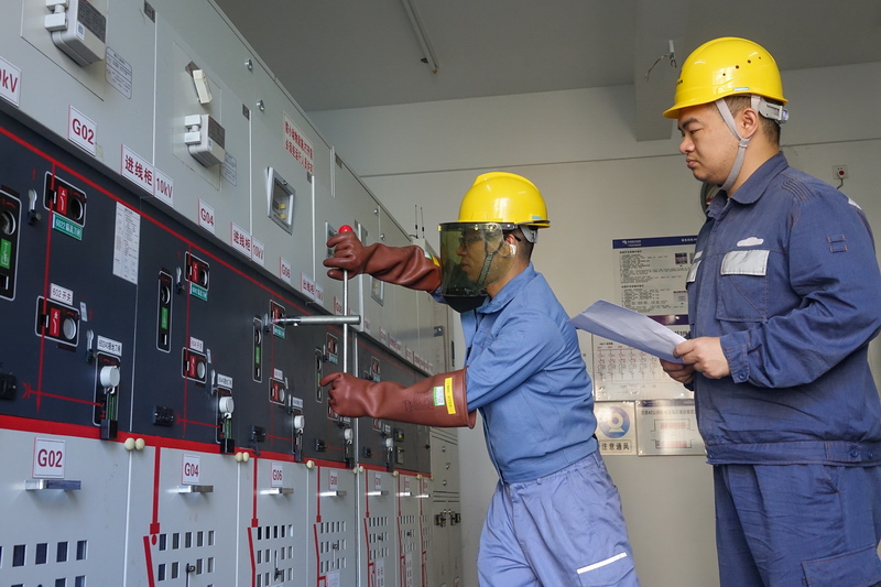 南方電網廣東珠海供電局運維人員在大萬山島上配電房內進行市電電源轉接操作。朱甸 攝