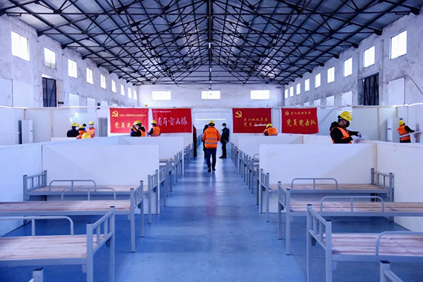 中國鐵建所屬的中鐵十一局集團累計投入8180余人次,完成9480張床位建設;中鐵十二局集團累計投入34人,安裝床位568個、隔板864平方米、窗戶128個,并對庫房區域清潔消毒;中鐵十四局集團累計投入155人次,完成約1150張床位改造。中鐵建設集團累計投入145人次,完成約340張床位改造。