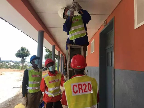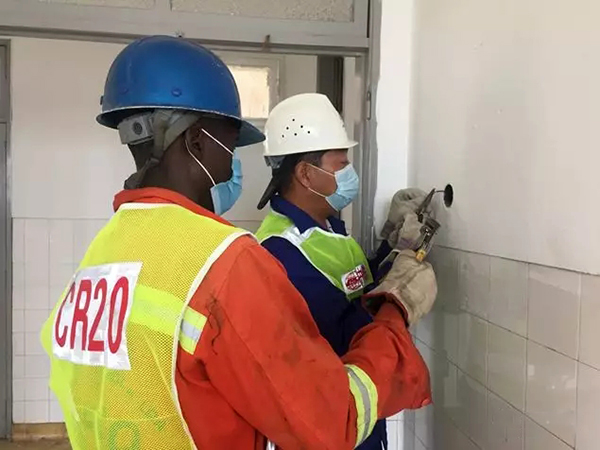 接到政府支援請求后,中鐵二十局集團安哥拉國際公司從周邊項目抽調(diào)2名電工及12名當?shù)貑T工立即援馳。為盡快完成醫(yī)院電路改造維修任務,援建員工每天早上6點多出門、晚上7點多下班,午餐由項目部安排專人送至施工現(xiàn)場,最多只預留半小時的吃飯時間?!皶r間很緊張,我們早一分鐘完成任務,安方人民的安全就能提前有一份保障?!眳⑴c建設任務的中方員工步延輝說道。