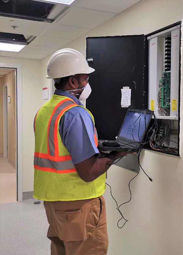 由于疫情影響,需要重新安裝的燈和插座無法正常購買。為了不影響施工進度,建設者從自有儲備物資中調(diào)配相關材料,全力保障施工順利開展,并對已安裝線路和開關逐個檢查測試,確保安全質(zhì)量萬無一失。