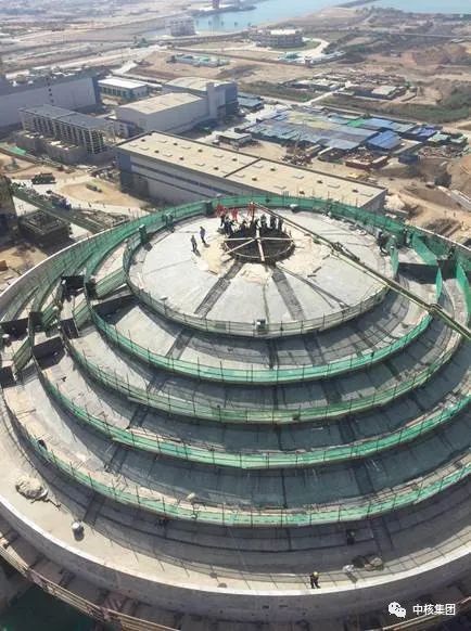 卡拉奇核電K2核島擁有雙層安全殼,外層安全殼分為筒體結構和穹頂結構兩部分,外穹頂結構承接筒體結構標準段,厚度1.8米,結構跨度大,鋼筋密集,混凝土量約為6600立方米,整體為扁殼形鋼筋混凝土結構,內襯為K-2/K-3項目創新的永久性整體鋼制模板。在保證安全和質量的前提下,現場各單位高度重視、緊密協作,克服了工期緊、任務重、工程量大等困難,順利完成了“華龍一號”海外首堆外穹頂封頂結構施工,為后續安裝調試創造了良好條件,為“華龍一號”海外首堆早日投產提供了堅實的基礎。