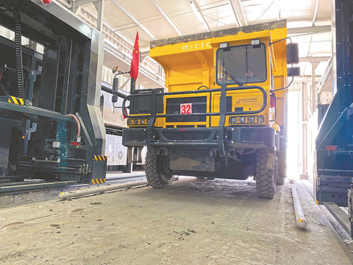 國內首臺套雙側貨叉式智能換電系統在內蒙古投運,實現90噸級純電動礦卡在4分鐘內全自動電池替換。