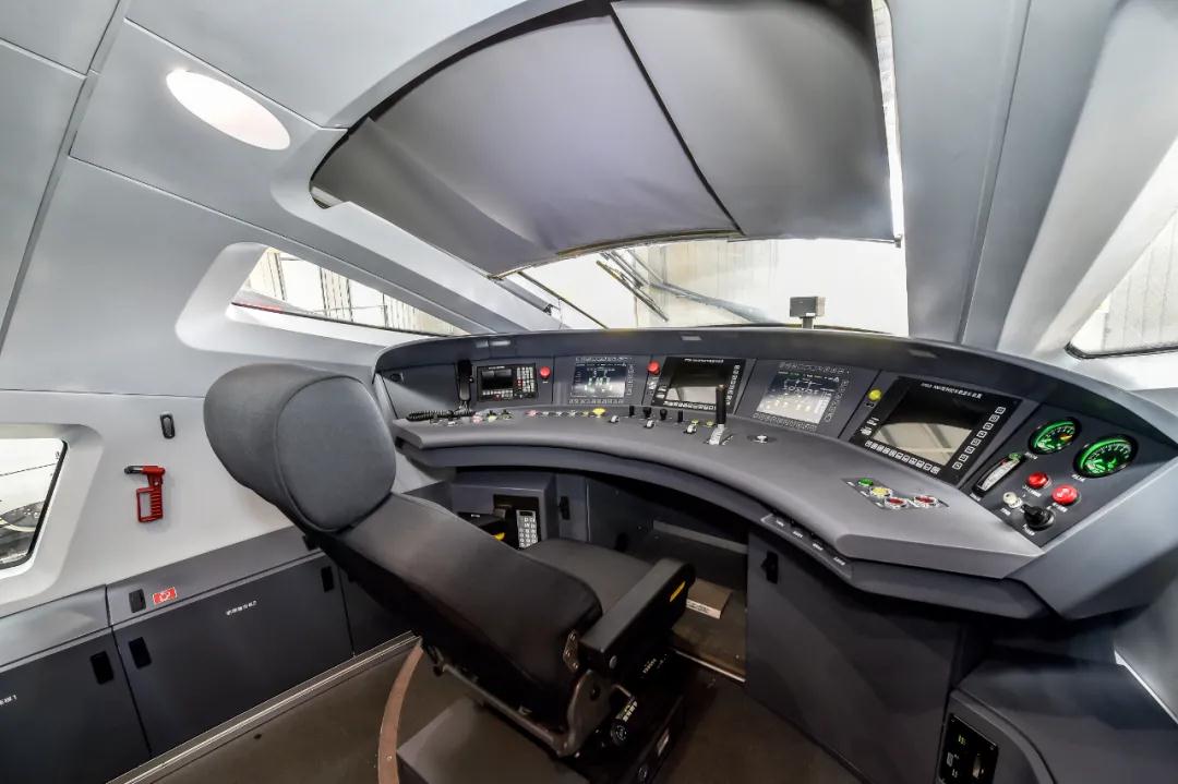 時速350公里高速貨運動車組適應環境溫度-25℃至40℃,動力配置為4動4拖8輛編組,載重不少于110t,載貨容積不少于800m3,載貨空間利用率≥85%。相較于航空、公路運輸,貨運動車組受環境因素影響較小,1500公里的距離5小時內即可到達。動車組車頭采用中華鱘骨骼線形的仿生學設計,增大了車頭長細比,經風洞試驗證明,該頭型在動感美觀的同時,與既有車型相比大幅降低了運行阻力,貨物單位重量能耗僅為飛機的8%。