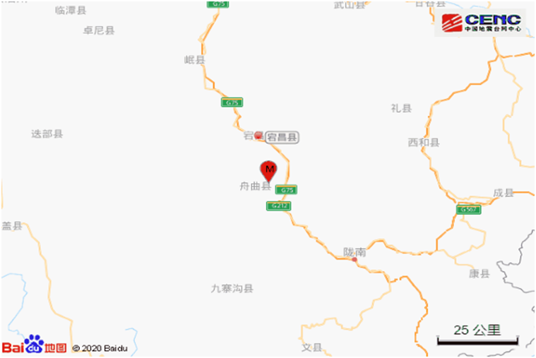 據中國地震臺網正式測定,2020年12月28日20時46分,甘肅隴南市宕昌縣發生3.9級地震,震源深度13km,震中位于北緯33.83o,東經104.45o。震中附近的隴南市宕昌縣以及甘南藏族自治州舟曲縣兩縣縣城均有明顯震感,而距離此次震中僅有10km的宕昌縣職業中等專業學校實訓樓頂層正在培訓上課的師生們卻普遍反映震感輕微、擺動不明顯。