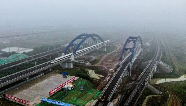 首趟客運列車通過撥接后的滬蓉鐵路新建段。劉創輝 攝