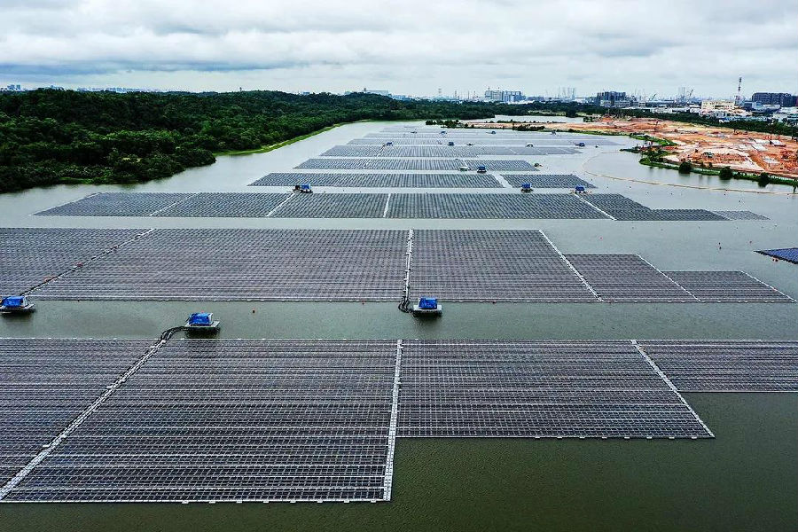 當地時間6月16日15時,中國能建山西院總承包建設的新加坡最大的光伏電站、全球最大的飲用水水庫浮體光伏發電項目——新加坡騰格水庫60兆瓦水上光伏項目成功并網發電,為全球飲用水資源可持續發展應用提供了新示范。