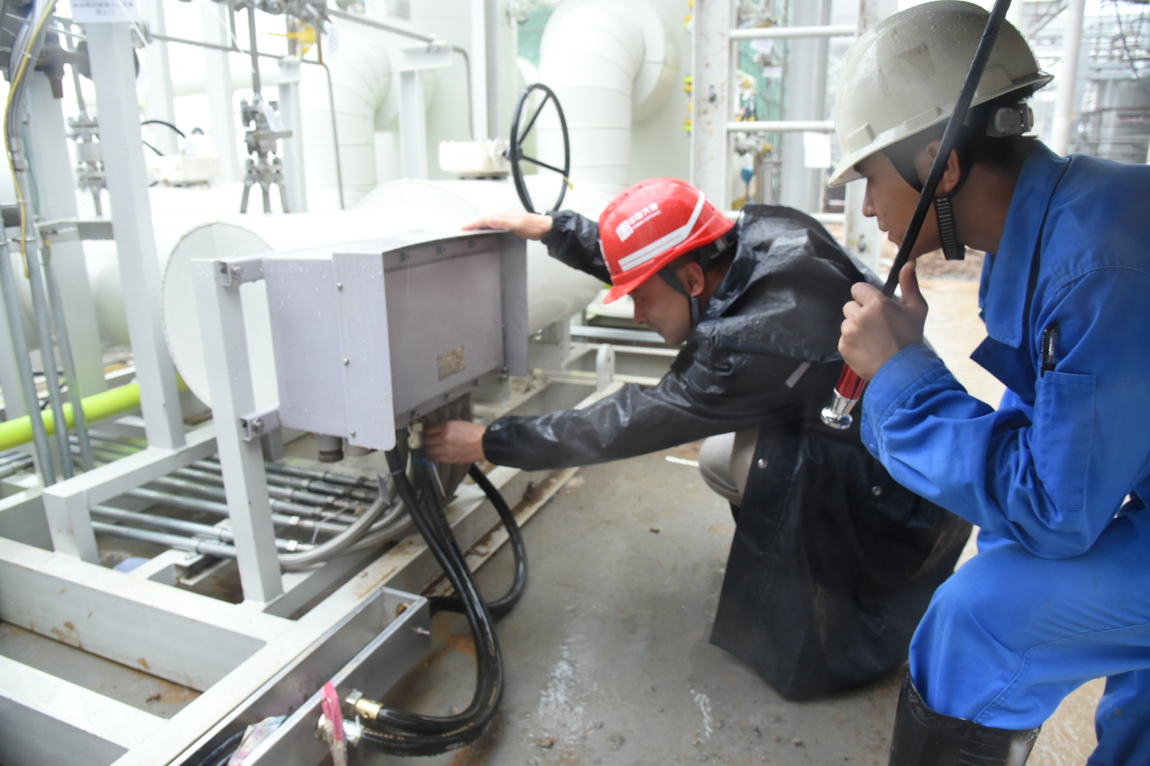大唐佛山熱電公司工程部匯同施工單位檢查室外電源箱防水情況