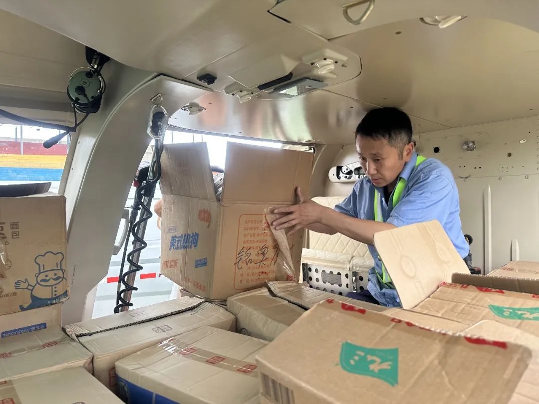 隨后,機組根據現場指揮部的要求開始向斷聯村屯投放應急物資,包括大米880公斤、肉和菜類300公斤、應急藥品5箱、火腿腸217公斤、掛面23袋、方便面15箱,共計3.5噸應急物資,保證斷聯村屯滯留村民的短期內生活所需。