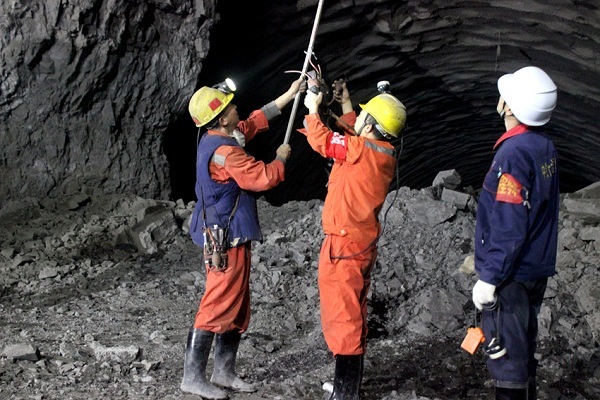 技術人員檢測洞內瓦斯濃度。
