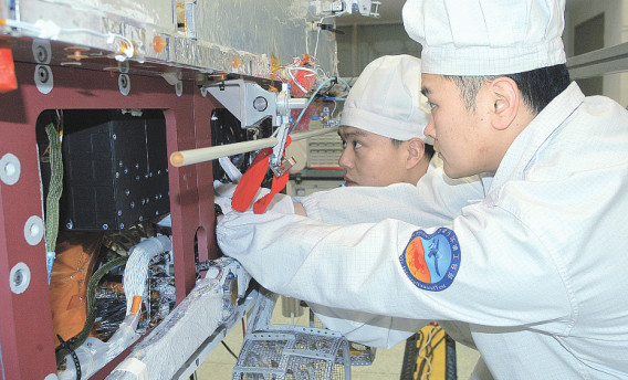 總裝人員正在進(jìn)行月球巡視器測試的狀態(tài)設(shè)置工作
