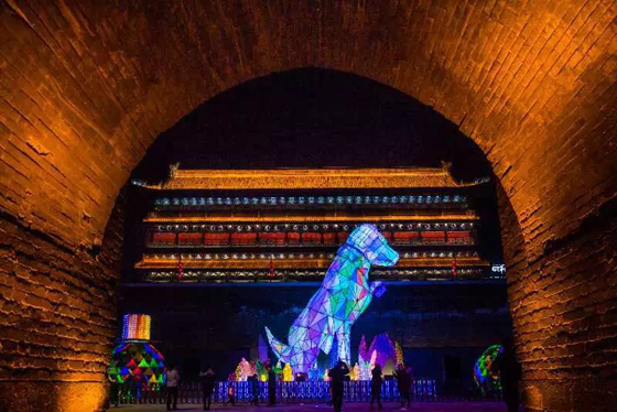 城墻之上,看萬盞彩燈如繁星閃爍;千姿百態(tài)的彩燈盛景,構(gòu)筑起夢(mèng)幻新春奇境。 “魚化龍”演繹驚艷動(dòng)感,“鳥語花香”帶來悅耳生動(dòng),“夢(mèng)與飛翔”用巨大雙翅與星云梭線營(yíng)造迷幻夢(mèng)境……