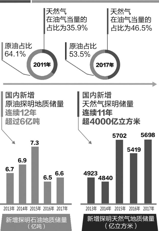 高質(zhì)量油氣供給最顯著的特征是結(jié)構(gòu)更加合理。近年來,中國(guó)石油國(guó)內(nèi)勘探開發(fā)從油氣并舉向加快天然氣發(fā)展轉(zhuǎn)變,天然氣勘探投入從原來1/3上升為1/2。天然氣在中國(guó)石油油氣業(yè)務(wù)中的占比由2011年35.9%上升為2017年46.5%。上半年國(guó)內(nèi)天然氣產(chǎn)量同比增長(zhǎng)3.4%,占全國(guó)產(chǎn)量的七成以上,為我國(guó)經(jīng)濟(jì)發(fā)展持續(xù)提供清潔能源。