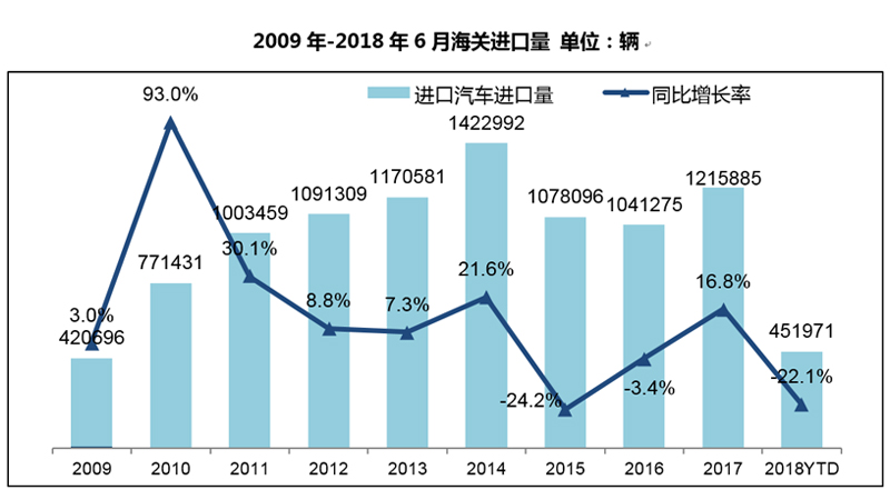 2018年上半年,在中美貿易摩擦及關稅政策調整背景下,中國進口汽車市場波動較大,呈現供需雙降,行業厙存大幅波動,市場結構深度調整等特征。