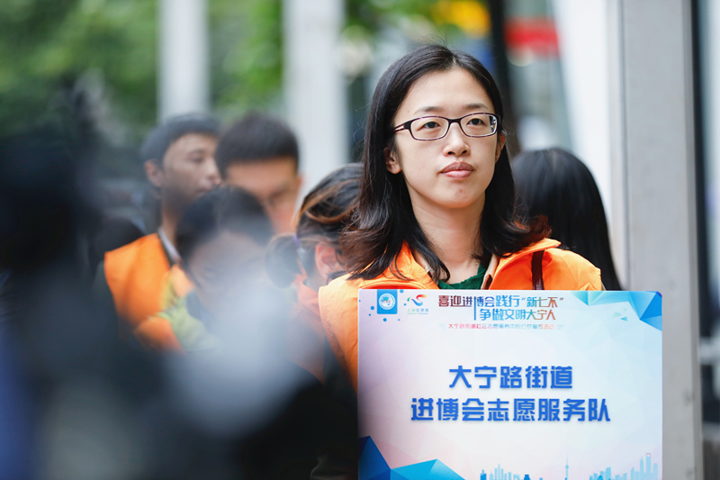 10月23日,參加上海靜安區(qū)大寧街道進博會志愿服務活動