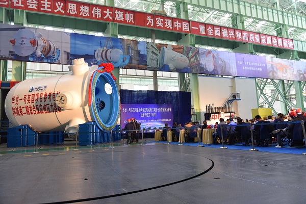 2018年11月29日,由中國一重承制的又一“大國重器”——華龍一號英國項目參考電站中廣核防城港核電二期工程首臺反應堆壓力容器在大連核電石化公司完成制造任務,為防城港二期工程建設穩步推進奠定了基礎。