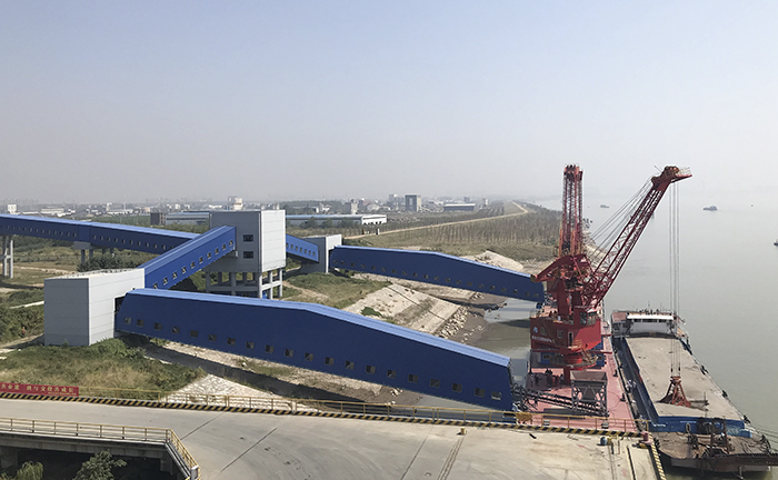 李埠港砂石集并中心位于李埠港區一期綜合碼頭5、6#泊位,由湖北交投荊州投資公司投資建設,工程占地面積約120畝,總投資約2.5億元,設計散貨泊位2個,年設計吞吐量360萬噸。集并中心于2017年10月開建,建設過程嚴把標準,嚴格程序,采取嚴格環保措施,采用全密封式結構建設,實現了從船靠岸到砂石運走,砂石全程不著地、堤外不見砂。