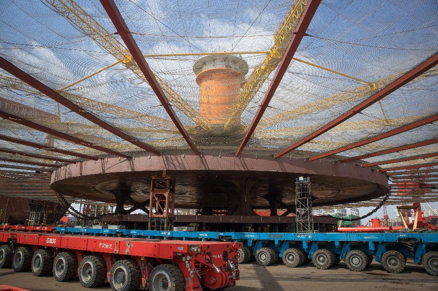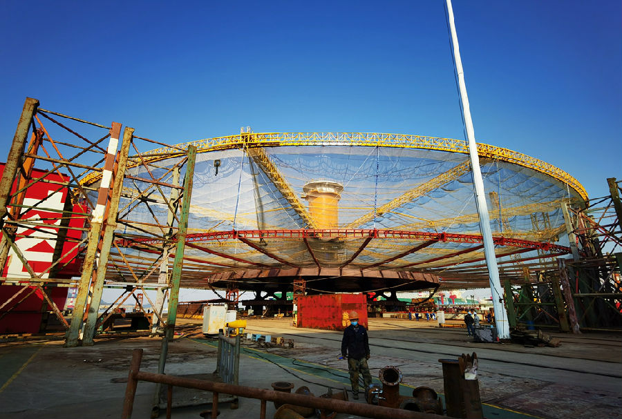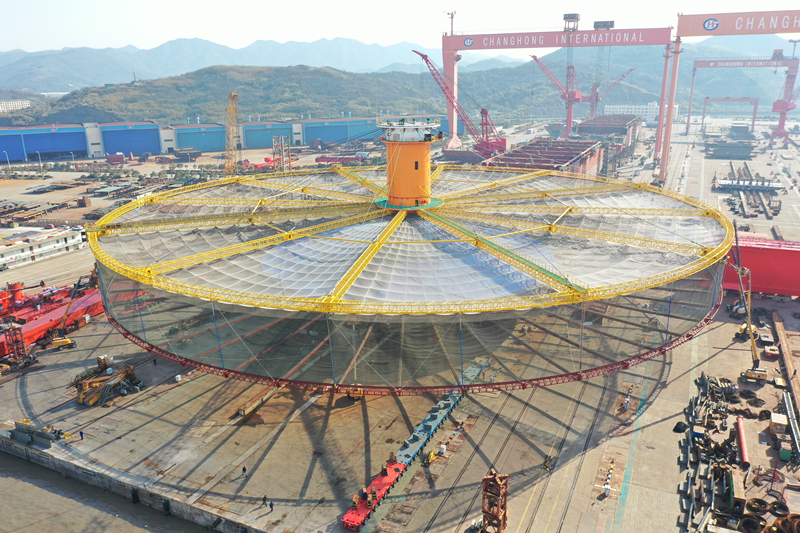 3月26日,由福建省船舶集團承制的“海峽1號”單柱式半潛深海漁場啟運前往福鼎海域進行安裝調試。
