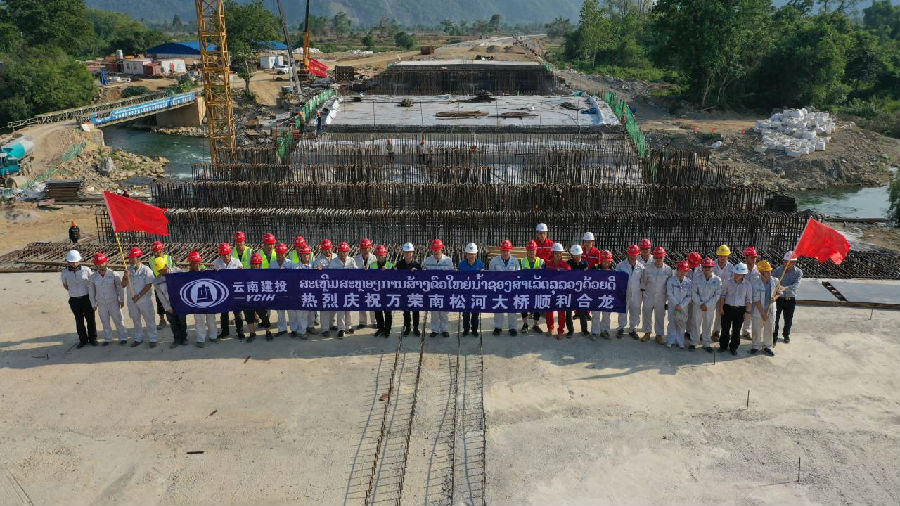近日,老中高速萬象至萬榮段南松河大橋第二跨主拱圈最后一方混凝土澆筑完成,大橋在雨季前順利實現合龍。