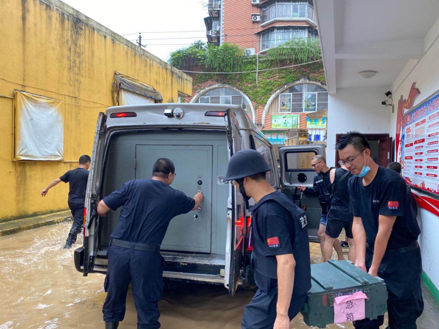 7月9日下午2時,國資守押公司邵武押運大隊停車場內發生內澇,邵武押運大隊大隊長黃延毅立即組織黨員突擊隊帶領隊員按照防汛預案,迅速將員工裝備、槍、彈、押運車輛等低洼地帶的重要物資設備,轉移至地勢較高的安全場所,并安排押運隊員對裝備、槍、彈等物資進行24小時警戒,確保安全。